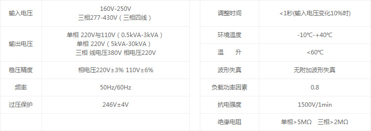 SVC系列單、三相高精度全自動交流穩壓器(穩壓電源),由接觸式自耦高壓器、伺服式電動機、自動控制電路等組成,當電網電壓不穩定或負載變化時,自動采樣穩壓器控制電路發出信號驅動伺服電機,調整穩壓器自耦調壓器碳刷的位置,使穩壓器輸出電壓調整到額定值并達到穩定狀態。
